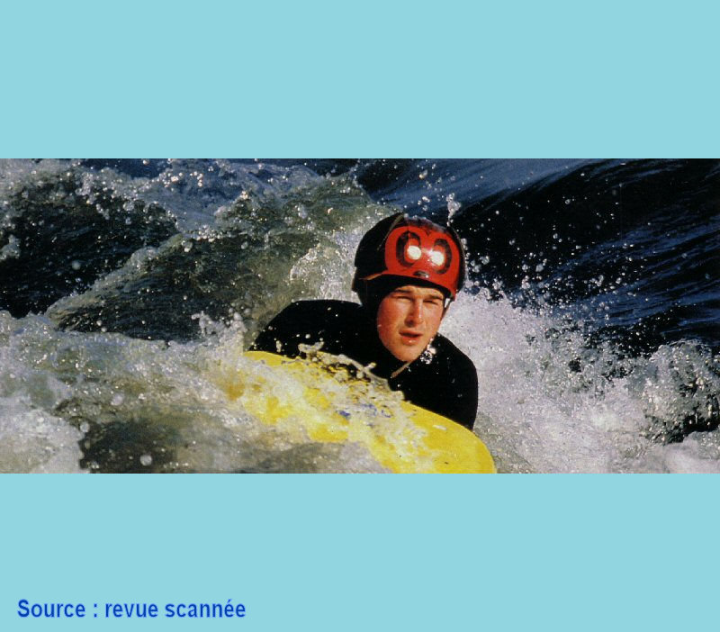 Texte : Caroline GROSS - Découvrir la montagne de l'intérieur, au contact de l'eau, se laisser emporter dans le courant comme un bouchon: la nage en eau vive est un sport grisant ... mais à ne jamais pratiquer seul ! La descente de torrents, équipée d'une combinaison, de palmes, d'un casque, d'un gilet et d'un flotteur (« l'hydrospeed ») n'est plus seulement réservée aux kamikazes. La nage en eau vive se pratique aujourd'hui un peu partout, des Pyrénées au Morvan. On nage dans des « rivières » classées de 1 à 6 selon les difficultés, soit à débit naturel, lors de la fonte des neiges au printemps et en été, soit sur lâchers d'eau. ... SUITE